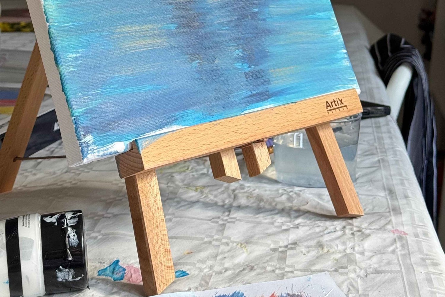 Relax with a glass of wine and a creative art therapy session in Alicante. Explore brush painting and fluid art pouring techniques, and take home a unique piece of art.