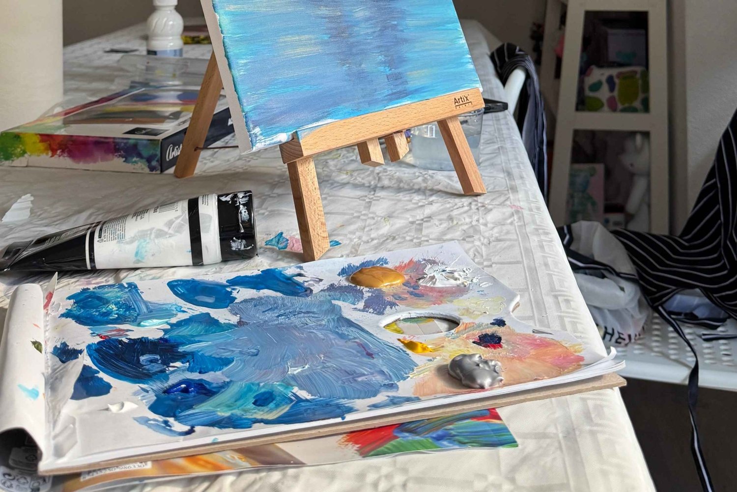 The studio in Alicante is cozy, bright, and fully equipped with everything you need: paints, brushes, gloves, aprons, and canvases. All you need to bring is yourself and an open mind. Workshops last between 1 and 1.5 hour, giving you plenty of time to relax, create, and enjoy your drink.