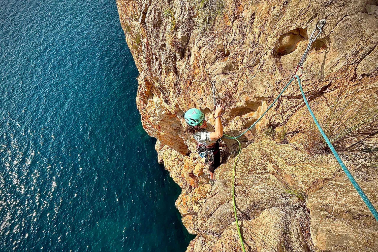 Experience "Erikindia", a 70-metre route on the cliffs of Morró de Toix in Alicante. With an aerial abseil, vertical climbs, and a thrilling chimney section, it’s perfect for intermediate climbers.