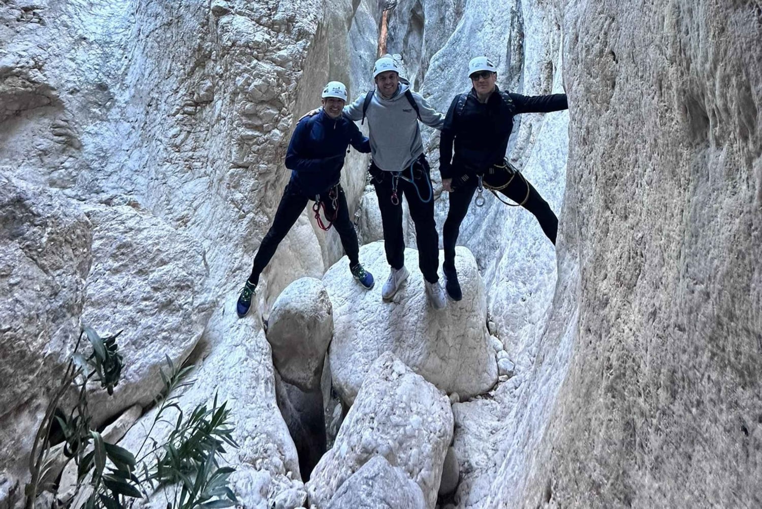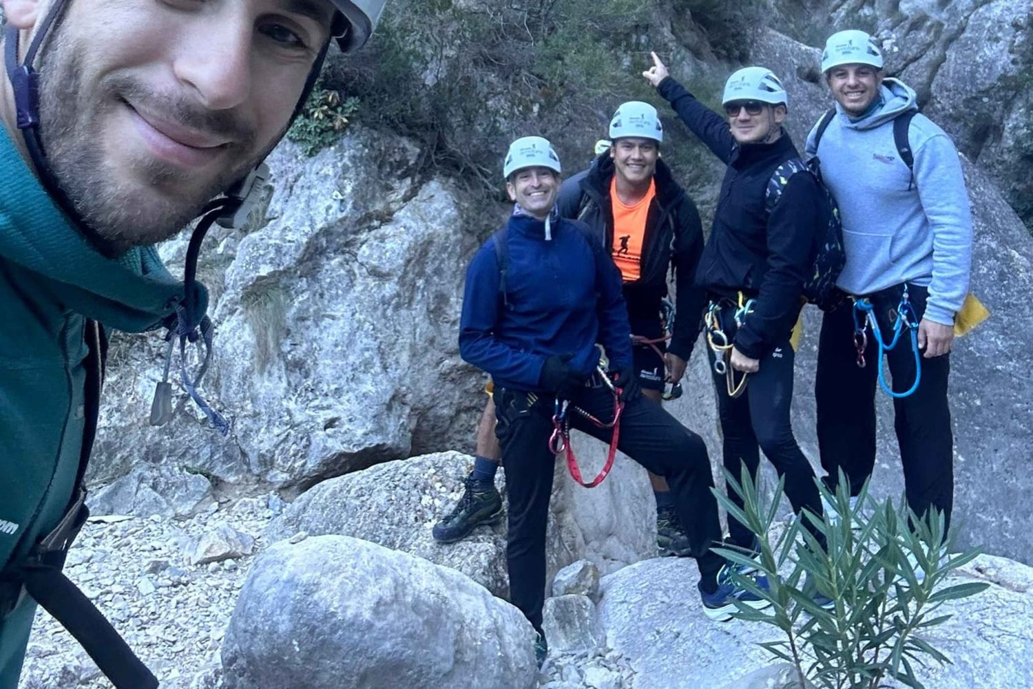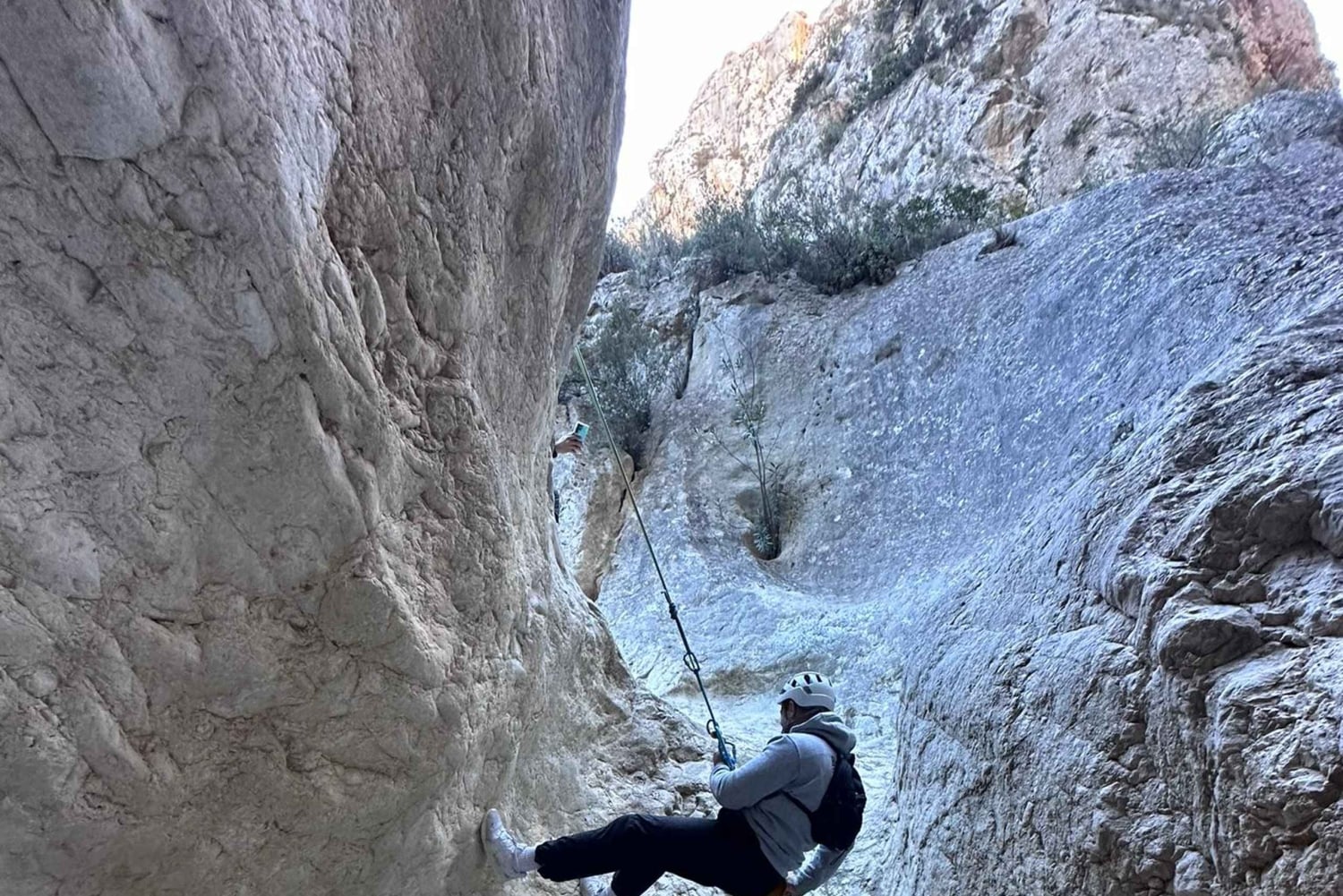 Marchez entre un abîme de majestueuses parois de pierre de cent mètres de haut dans cet étroit canyon très proche de la mer, une option intéressante pour ceux qui aiment le canyoning, plein de rappels et de mains courantes.
