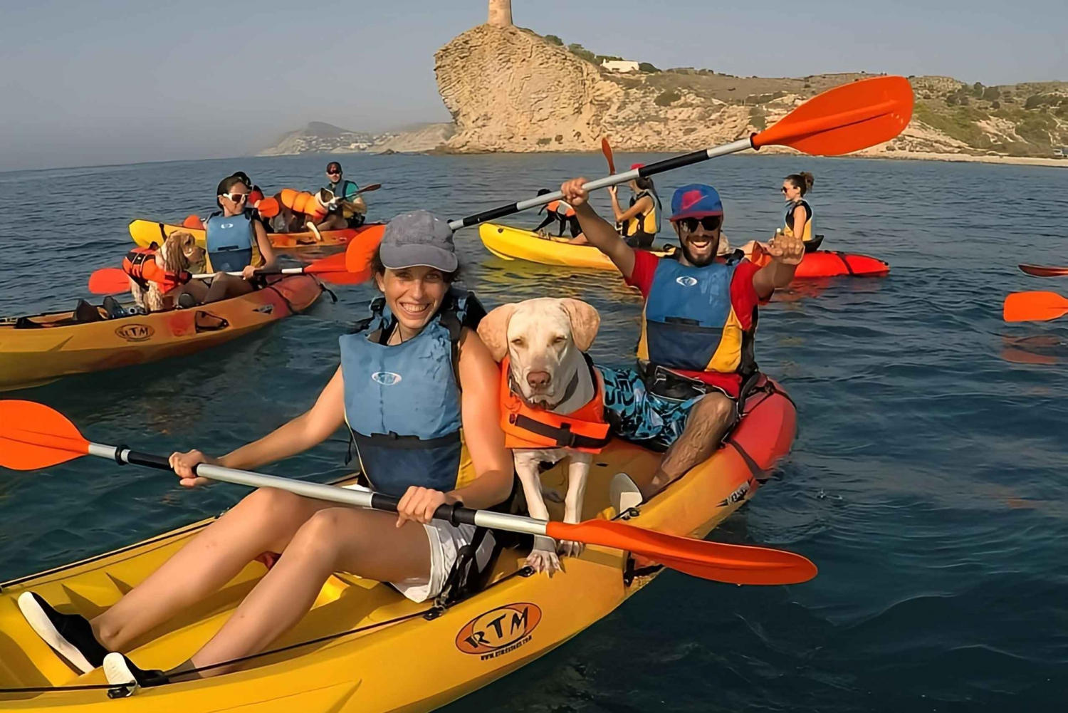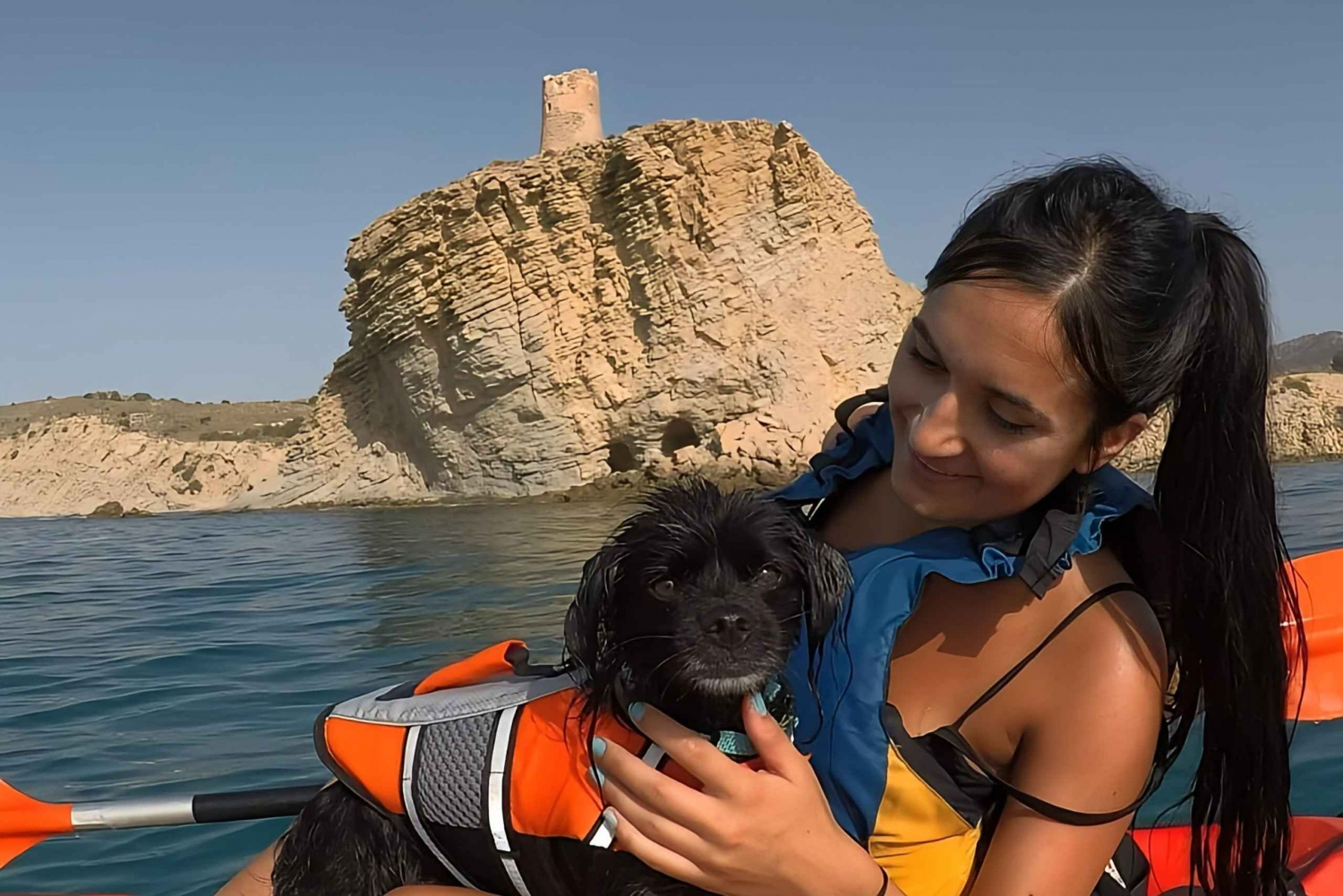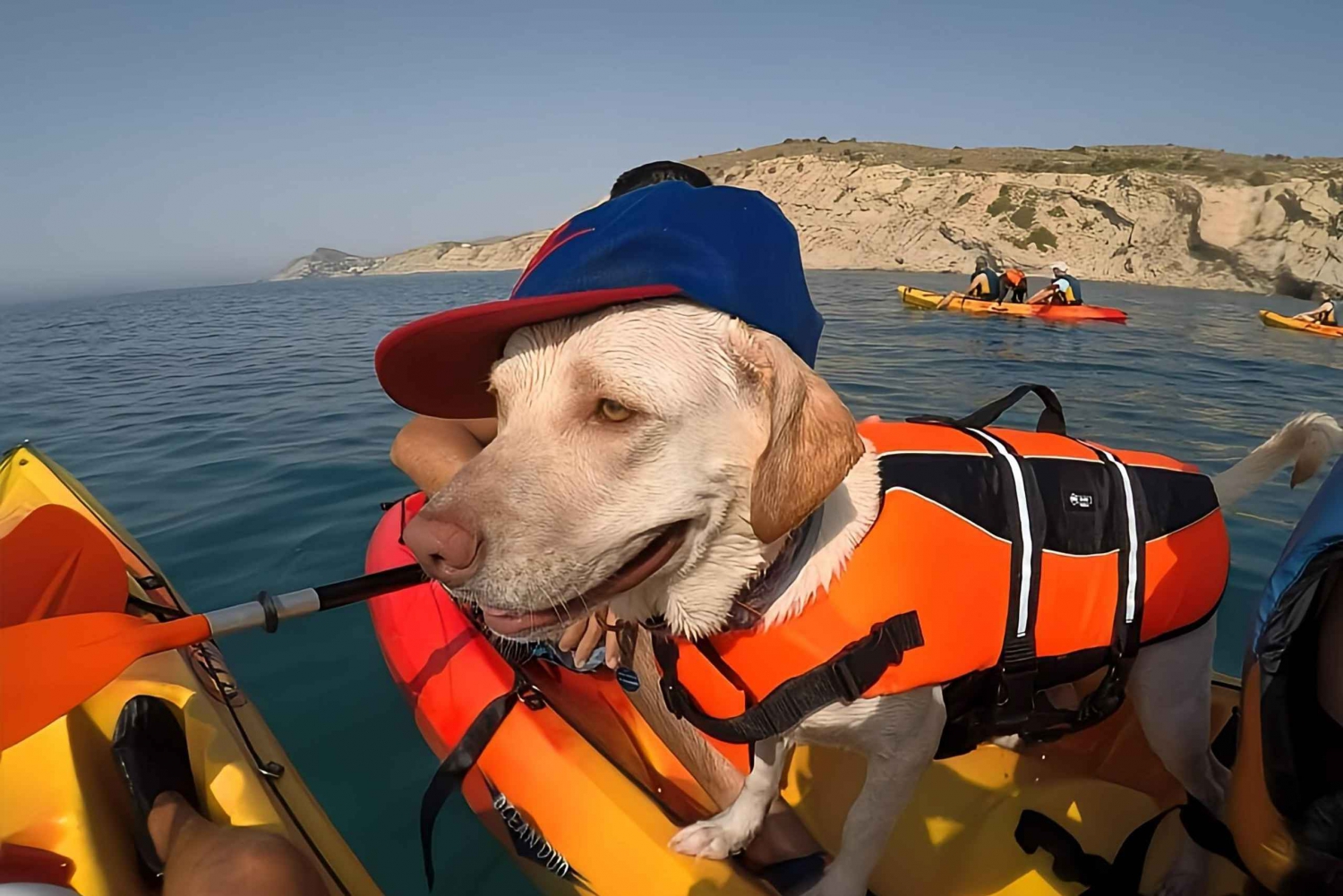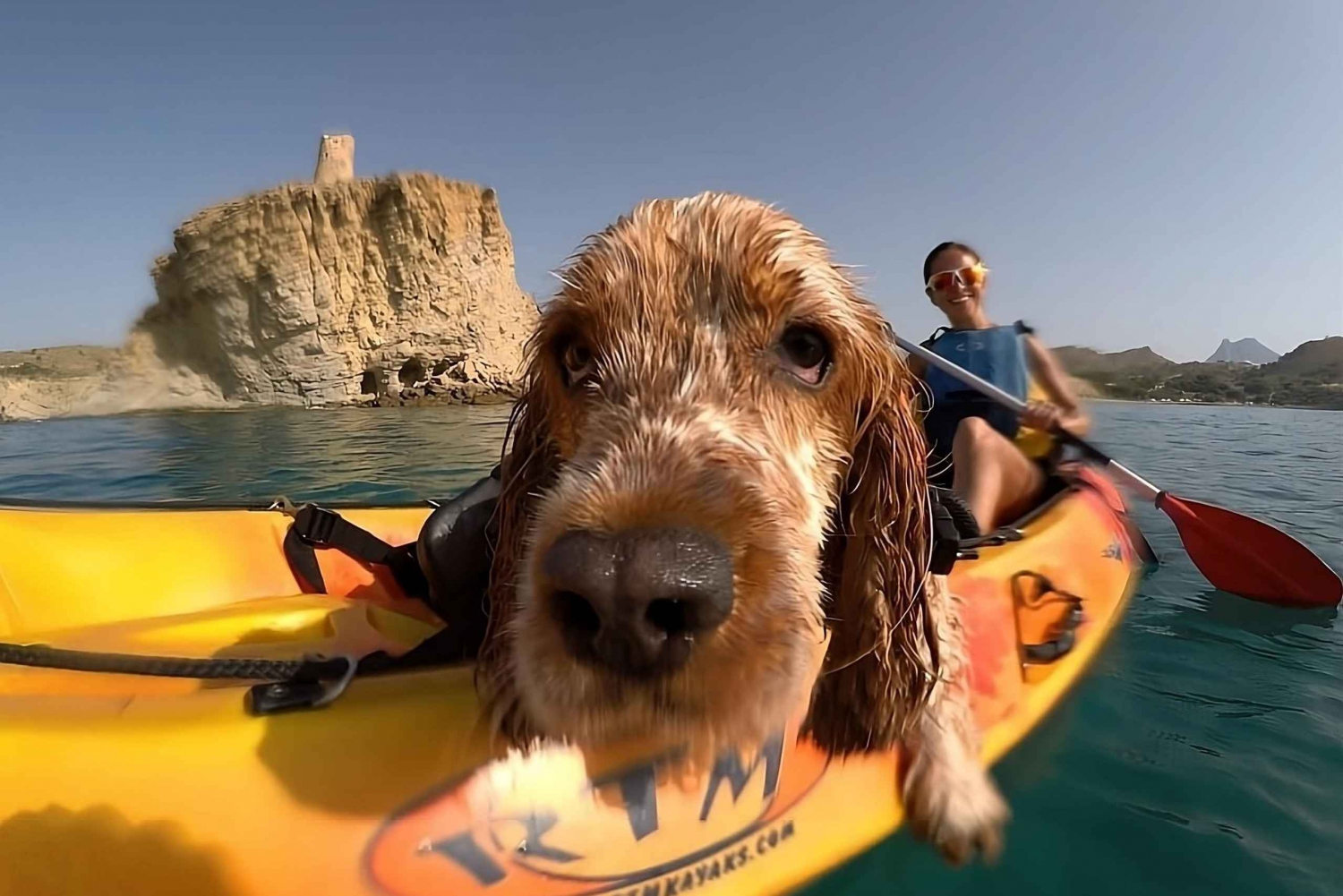 犬と一緒にカヤックに乗ったら、カリチャル ビーチに向かって南に向かい、アリカンテ海岸の崖の素晴らしい景色を楽しみます。波がとても穏やかな静かなルートで、愛犬がカヤックに慣れてパドリング技術を磨くのに最適です。